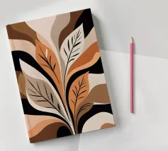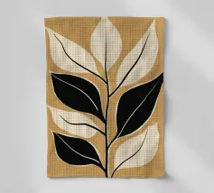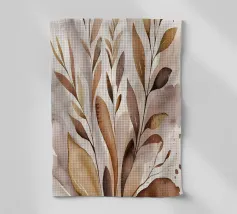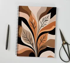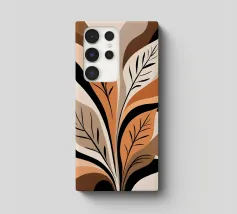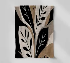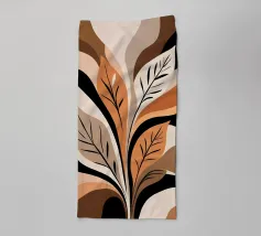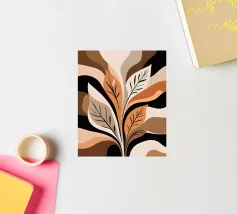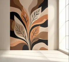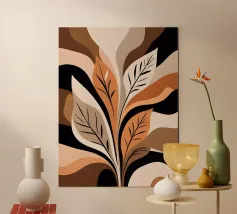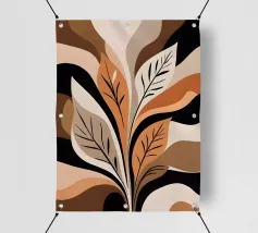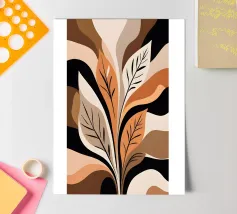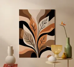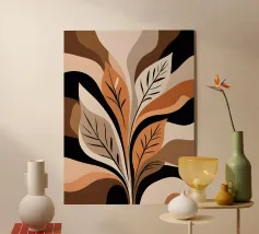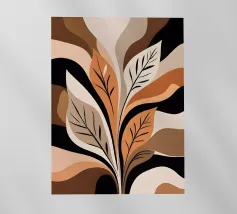 Cette œuvre d'art botanique abstraite présente des feuilles tourbillonnantes dans des tons chauds de brun, de beige et de noir. Les formes organiques et les lignes fluides créent un sentiment de mouvement et d'énergie, tandis que les couleurs terreuses évoquent l'automne.