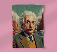Une caricature humoristique du célèbre mathématicien et scientifique de génie né en Autriche, Albert Einstein. Cette caricature fait partie d'une série réalisée dans le cadre de la série Celebrity Sunday, où une personne célèbre est représentée en l'espace d'une journée. L'idée est de les représenter comme sur une photo d'identité afin d'assurer la cohérence de l'ensemble.