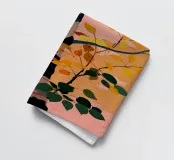 Une œuvre d'art minimaliste représentant un bouleau unique avec des feuilles colorées, peinte dans des tons audacieux et plats.
