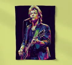 Bruce Springsteen en style WPAP est un portrait vibrant et géométrique du Boss, avec des formes audacieuses et anguleuses et des contrastes de couleurs saisissants. Cette technique moderne d'art pop capture son énergie intense et sa présence légendaire, reflétant son influence profonde sur la musique rock. Le style WPAP rehausse son image emblématique, en soulignant ses performances passionnées et ses prouesses de conteur grâce à des teintes dynamiques et très contrastées.