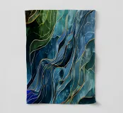 Cette œuvre d'art abstraite envoûtante présente des teintes vibrantes et tourbillonnantes de bleu, de vert et d'or. Les lignes et les motifs complexes évoquent un sentiment de profondeur cosmique et de beauté éthérée. Cette œuvre est parfaite pour ajouter une touche d'élégance et de sophistication à n'importe quel espace.