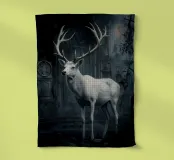 Au milieu d'un paysage de ruines sombre et abandonné se tient un majestueux cerf blanc aux impressionnantes ramures. L'arrière-plan laisse entrevoir une cathédrale en ruine, dont les structures gothiques disparaissent mystiquement dans le brouillard. L'œuvre ressemble presque à une vision - entre rêve, légende et apparition spirituelle. Le cerf blanc représente traditionnellement la pureté, la guidance et le divin. Ce tableau s'adresse aux amateurs de fantastique, de mythes et de représentations mystiques de la nature. Idéal pour les pièces méditatives, les chambres à coucher ou les lieux en lien avec la nature et la paix intérieure.