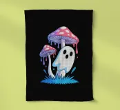 Un petit fantôme espiègle surgit d’un duo de champignons fondants aux couleurs pastel psychédéliques. Ce design mêle l’étrange et le mignon dans un univers pop et surnaturel. Parfait pour les fans de champignons magiques, d’illustrations cute-dark et d’imaginaires décalés ou pour Halloween. Une touche de mystère enchanté et de fun coloré à afficher sans modération.