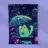 chat parapluie pluie plantes feuilles fleurs gouttes de pluie lueur néon forêt ciel nocturne flaque d'eau surface mouillée fleurs violettes lumière incandescente animal mignon caricatural nocturne temps de pluie verdure atmosphère sombre