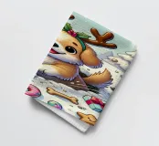 Un adorable chiot portant des bois de renne s'amuse à creuser dans la neige pour y trouver des friandises de Noël. Son expression enthousiaste reflète la joie des fêtes de fin d'année.