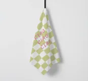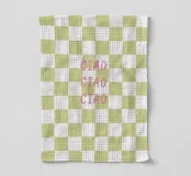 ciao ciao ciao sur un motif de chèque couleur pistache.
