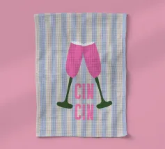 Élégante conception sur le thème des toasts, avec la phrase italienne "Cin Cin !" - une célébration élégante de l'amitié, du vin et du bon temps.