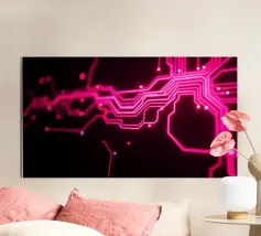 Des circuits rose vif avec des voies interconnectées créent un visuel saisissant de la technologie moderne. Le dessin complexe met en évidence la complexité et la beauté des circuits électroniques.
