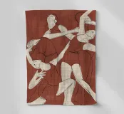 Dessin abstrait au trait représentant des danseurs dans un mouvement fluide, sur un fond chaud de terre cuite qui rayonne d'une élégance et d'un rythme terrestres.