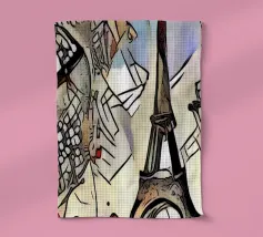 La Tour Eiffel est un symbole bien connu de Paris et représente la France dans son ensemble. La réalisation graphique montre la tour composée uniquement de mots. Motif moderne et décoratif avec des figures géométriques qui renforcent l'effet de la Tour Eiffel et la mettent en valeur.