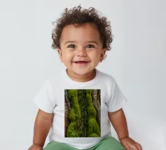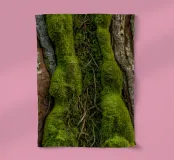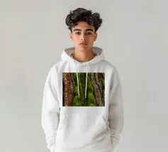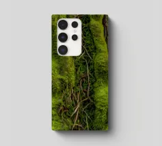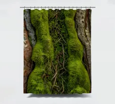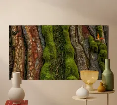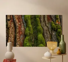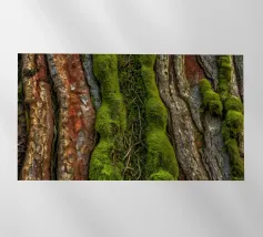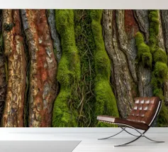 Le gros plan révèle les riches textures de l'écorce des arbres, mettant en valeur la mousse d'un vert éclatant et les lianes torsadées qui s'entremêlent avec les surfaces rugueuses d'une forêt.