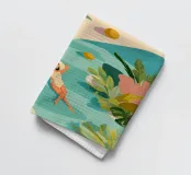 La lumière du soleil filtre à travers les feuilles tropicales alors qu'elle flotte paisiblement dans une piscine, complètement à l'aise. Le monde qui l'entoure s'évanouit dans des couleurs douces et des formes tranquilles - les boules de plage, les sandales et le temps lui-même sont tous laissés derrière elle. Expiration visuelle, cette œuvre nous rappelle qu'il faut faire une pause, respirer et laisser le repos nous suffire.