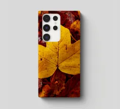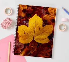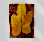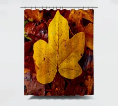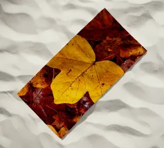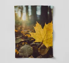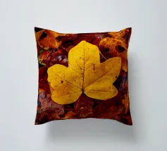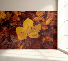 Une feuille d'érable jaune repose sur de nombreuses autres feuilles en automne.