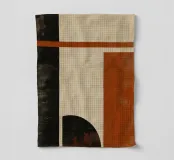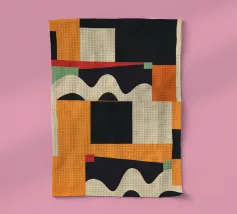 Les formes géométriques en rouge rouille, orange et marron se fondent harmonieusement les unes dans les autres. Un abstrait intemporel qui rehausse les intérieurs à l'esthétique mid-century, scandinave ou bohème.