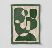 Formes géométriques abstraites dans des tons verts profonds, minimales et équilibrées.