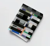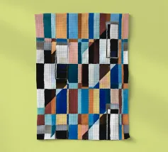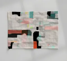 Un arrangement géométrique de rectangles et de carrés colorés crée un motif abstrait vibrant. Le motif utilise un arrière-plan en niveaux de gris avec des touches d'orange, de bleu et de vert, créant ainsi une composition visuellement dynamique.