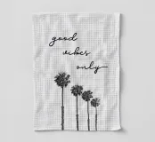 Vue idyllique de palmiers dans un style minimaliste. GOOD VIBES ONLY. De bonnes vibrations, une énergie positive et tout simplement une bonne ambiance.