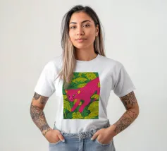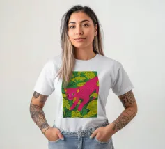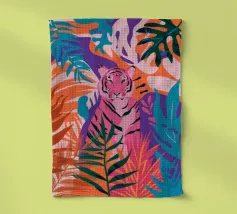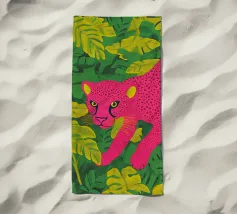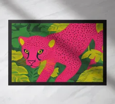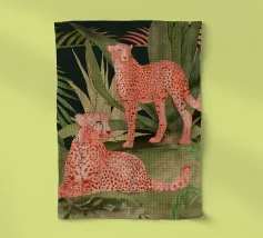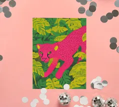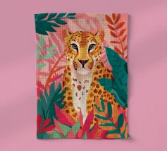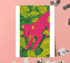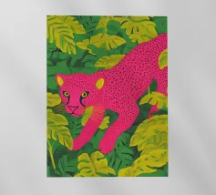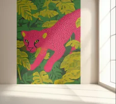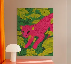 Ce n'est pas un safari ordinaire. C'est une aventure rose qui se déroule dans une forêt tropicale luxuriante, où des chats vibrants, des tigres, des léopards, des zèbres, des jaguars et des guépards apportent une touche pop-art à la décoration murale. Dans cette peinture au trait, un guépard rose vif se prélasse au milieu d'un feuillage verdoyant, laissant sa teinte vive prendre le devant de la scène. Les feuilles tropicales exquises offrent un contraste saisissant, ce qui fait de cette œuvre une attraction instantanée pour votre salon ou votre studio de création.