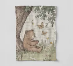 In a whimsical garden, a bear holds a juicy watermelon surrounded by fruits and a lush tree. The lively composition celebrates abundance and nature�s sweetness.
