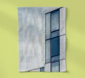 Cette affiche photographique capture la façade d’un immeuble contemporain d’Helsinki avec une extrême délicatesse. Les lignes verticales et horizontales se répondent dans une harmonie de blanc, bleu et verre dépoli. Un hommage calme et sophistiqué à l’architecture fonctionnelle du Nord.