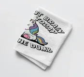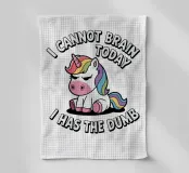 Une jolie licorne à la crinière arc-en-ciel est entourée d'étoiles, accompagnée du texte humoristique "I cannot brain today, I has the dumb" (Je n'ai pas de cerveau aujourd'hui, j'ai la tête qui tourne). L'image est placée sur un fond uni.