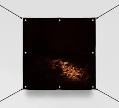 Un léger faisceau de lumière perce l'obscurité, mettant en évidence le sol rugueux et texturé d'une grotte. La douce lueur apporte de la chaleur à cet environnement autrement ombragé.