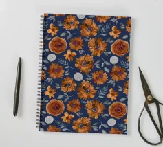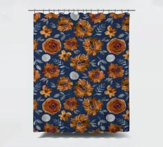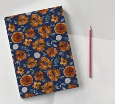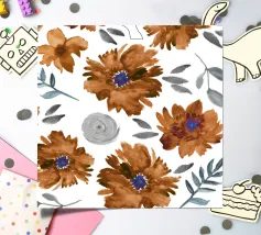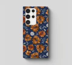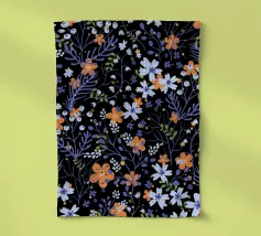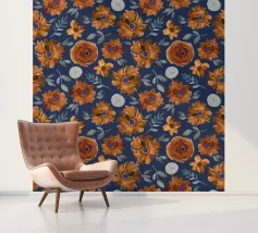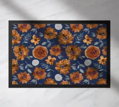 Motif de fleurs d'automne en bleu minuit - aquarelle peinte à la main par Petra Lang.