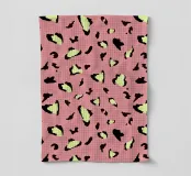 Motif léopard pop sur fond rose pastel, avec des détails jaune clair et noirs. Ce design audacieux et tendance apporte une touche d'énergie et de style à n'importe quel accessoire ou meuble, idéal pour ceux qui souhaitent donner un aspect vivant et original à leurs espaces.