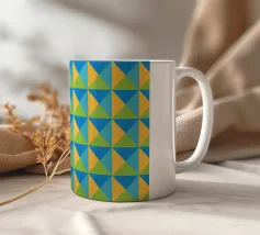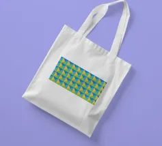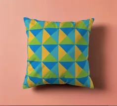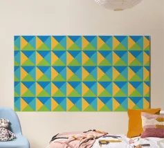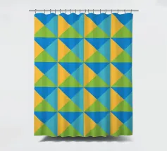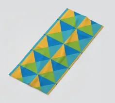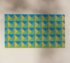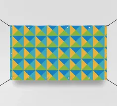 Design joyeux. Concept de printemps ludique sur fond coloré. Motif symétrique et répétitif. Forme géométrique. Film imprimé rétroéclairé, papier à lettres, oreillers décoratifs, tasses et couvertures. Couleurs vives : jaune, vert et bleu. Célébration d'un événement printanier. Convient également pour un spectacle de cirque, un théâtre ou une école.