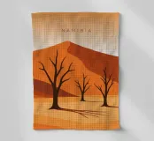 Minimalistisches Namibia Reise-Design mit Deadvlei bzw. Sossusvlei in der Namib. Dieses typisch afrikanische Landschaftsmotiv eignet sich perfekt für alle Namibia-Reisenden, die die Sanddünen und die pittoresken Kameldornbäume lieben.