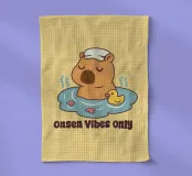 Un capybara paisible se détend dans une source d'eau chaude avec une serviette sur la tête et un canard en caoutchouc comme compagnon, entouré de cerisiers en fleurs. Cette adorable illustration de style kawaii rayonne d'une énergie calme et douillette, parfaite pour ceux qui aiment les vibrations froides et l'esthétique douce. Idéale pour les fans de culture japonaise, d'animaux mignons ou pour tous ceux qui pensent qu'il faut laisser le stress à la porte - Onsen Vibes Only.