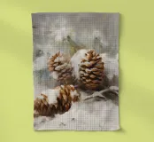 Plongez dans la beauté délicate des détails subtils de l'hiver avec cette œuvre d'art captivante représentant une grappe de pommes de pin nichées dans une neige fraîche et immaculée. Des branches de conifères doucement drapées, également saupoudrées de neige, encadrent la scène, créant une ambiance paisible et naturelle. La peinture capture magnifiquement les textures de la neige et l'élégance naturelle des pommes de pin, évoquant un sentiment de calme paisible. Ce poster numérique de qualité supérieure, méticuleusement reproduit à une résolution époustouflante de 7000x5000 pixels et 300 dpi, apporte les détails complexes et le charme serein de cette délicieuse scène hivernale dans votre maison.