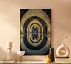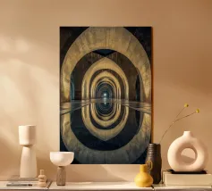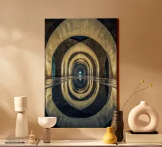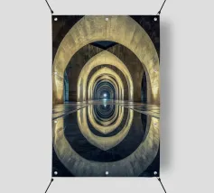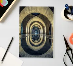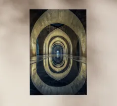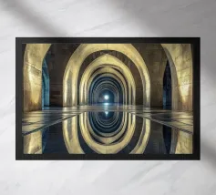 Plongez dans un univers hypnotique avec cette vue architecturale saisissante de Barcelone. Les arches lumineuses et leur reflet parfait créent une symétrie envoûtante, symbolisant l'éternité et la sérénité. Idéal pour sublimer votre espace avec une touche de mystère et d'élégance intemporelle.