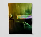 Une invitation au voyage entre ombres et lumières. Ce visuel abstrait joue avec les tons chauds et les nuances de néons pour une atmosphère envoûtante. Parfait pour sublimer votre intérieur avec élégance.