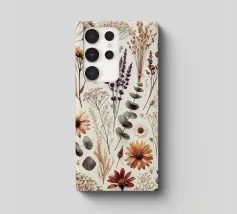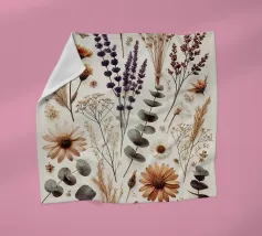 Une délicate composition de fleurs séchées, de forme et de taille variables, avec des pétales doux et discrets dans des tons de beige, de jaune pâle et de rose poussiéreux, sur un fond neutre épuré et minimaliste avec une légère nuance chaude, évoquant un sentiment de sérénité et de simplicité, les tiges et les feuilles ajoutant une touche de tonalité terreuse à l'ensemble de la composition.