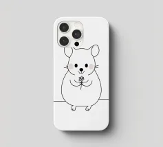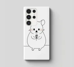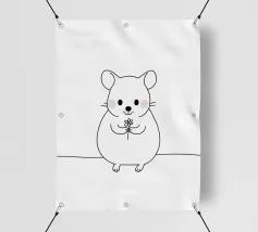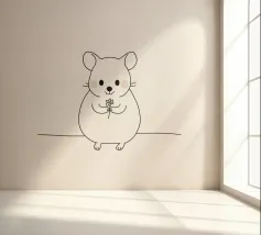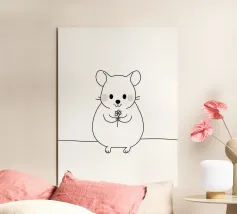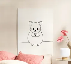 Dessin au trait minimaliste d'une souris tenant une fleur Parfait pour les amoureux des animaux et les décorations murales fantaisistes inspirées de la nature