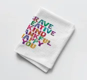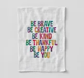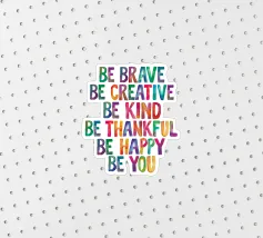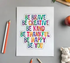 Illuminez votre espace avec cette impression typographique édifiante. Le message inspirant "Be Brave Be Creative Be Kind Be Thankful Be Happy Be You" (Soyez courageux, soyez créatifs, soyez gentils, soyez reconnaissants, soyez heureux, soyez vous) est magnifiquement reproduit en lettres peintes à la main dans une aquarelle arc-en-ciel vibrante, sur un fond blanc impeccable. Cette œuvre accrocheuse célèbre la positivité, l'individualité et l'expression de soi, ce qui la rend parfaite pour n'importe quelle pièce, de la chambre à coucher à l'espace de travail créatif. Son design joyeux rayonne d'optimisme et d'encouragement, vous rappelant d'embrasser vos qualités uniques chaque jour. Laissez cet imprimé coloré apporter de la joie et de l'inspiration à votre intérieur, tout en diffusant de l'information sur votre personnalité.