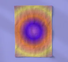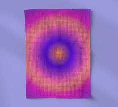 Une onde colorée traverse la toile en dégradé de tons vibrants. L'œuvre capte l'idée d'une vibration lumineuse en perpétuel mouvement.