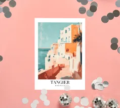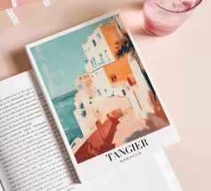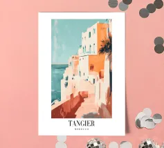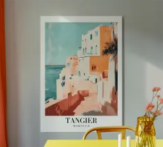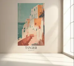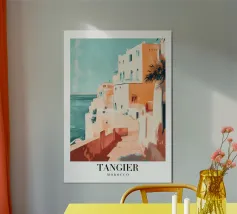 Transportez-vous sur la magnifique côte de Tanger, au Maroc, avec cette impression d'art vibrante. L'image capture l'architecture unique des bâtiments blancs et en terre cuite qui descendent en cascade vers le bleu étincelant de la mer Méditerranée, sous un ciel éclatant. Ce poster numérique de qualité supérieure (7000x5000 pixels, 300 dpi) met magnifiquement en valeur les couleurs vives et le paysage côtier spectaculaire de Tanger, parfait pour ajouter une touche exotique et rafraîchissante à votre décoration intérieure.