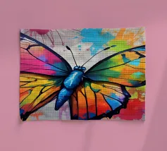 Cette œuvre d'art captivante présente un contraste saisissant de noir profond, avec en son cœur un papillon lumineux hypnotisant. Le papillon semble être dans un état de transformation, ses ailes délicates fondant et dégoulinant d'énergie lumineuse, créant un effet éthéré, presque d'un autre monde. L'arrière-plan sombre amplifie l'éclat doux et radieux du papillon, attirant l'œil du spectateur sur ses détails complexes et son mouvement dynamique. Idéal pour ceux qui apprécient l'art moderne et surréaliste avec une touche de mysticisme.