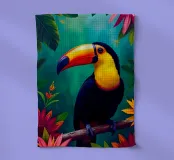 Un toucan radieux se perche fièrement dans la jungle tropicale, son bec coloré brillant parmi les fleurs et la verdure. L'œuvre mêle détails photoréalistes et textures picturales, créant une ambiance vivante et onirique. Parfait pour les intérieurs maximalistes qui adoptent des tons audacieux et un charme exotique. Cette illustration fait partie de la série Tropical Radiance - un voyage vibrant à travers la lumière tropicale et la beauté de la jungle. Cette illustration numérique a été créée en prêtant attention à la lumière, aux détails et à l'atmosphère. Imaginée par LUMAQUA Studio, visualisée avec l'aide de l'IA.