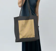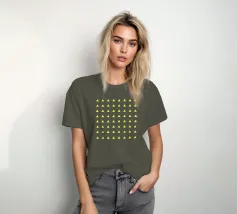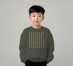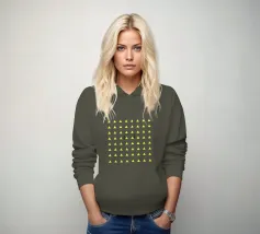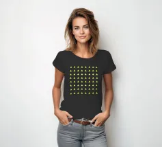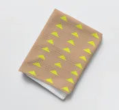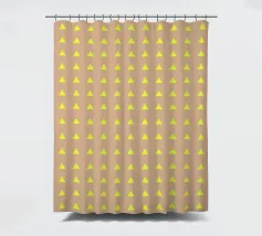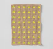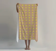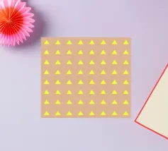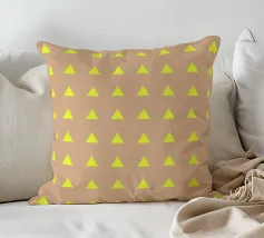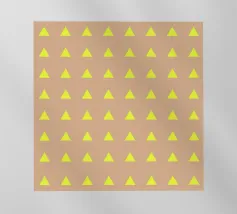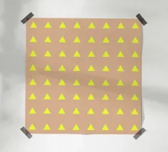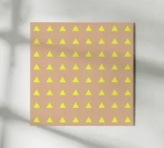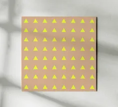 Motif géométrique stylisé et minimaliste composé de triangles jaune néon, sur un fond beige neutre.