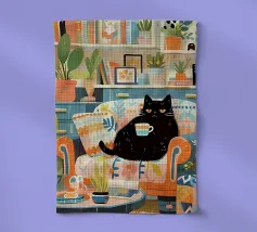 Un chat tuxedo noir et blanc dort paisiblement sur une pile de livres à côté de son maître. La scène est réconfortante, confortable et représente parfaitement la compagnie tranquille d'une personne et de son animal de compagnie.