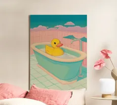 Si vous n'avez pas de canard en caoutchouc jaune géant dans votre baignoire vintage, vous devriez vous en procurer un. Vous devriez également vous procurer cette œuvre d'art pour transformer le décor fade de votre salle de bains. Le design ludique et la palette rétro insufflent instantanément de la vie et de l'humour dans n'importe quelle pièce, transformant les moments de routine en une expérience fantaisiste. Les enfants adorent ce canard lumineux et sympathique, et les invités ne peuvent s'empêcher de sourire en le voyant. Pour tous ceux qui cherchent à faire une déclaration audacieuse, sans sacrifier le charme et le goût artistique, cette œuvre d'art est le moyen idéal d'injecter de la couleur, de l'humour et de la personnalité dans un espace autrement ordinaire.