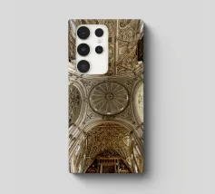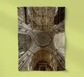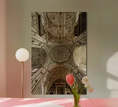 de Alexander Baumann À propos de l'œuvre d'art Cette image montre la magnifique voûte du plafond de la cathédrale de la grande mosquée de Cordoue, l'un des monuments les plus importants d'Espagne. La photo capture l'architecture gothique avec des structures de nervures élaborées, des arcs symétriques et des reliefs en pierre détaillés. Les segments centraux de la voûte sont ornés de motifs floraux et d'un décor ornemental qui reflète de manière impressionnante l'art de la taille de pierre du Moyen Âge. La lumière pénètre dans la pièce par des ouvertures de fenêtres finement travaillées et crée un jeu d'ombres atmosphérique.