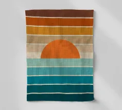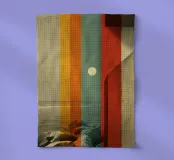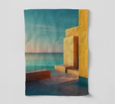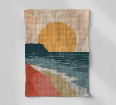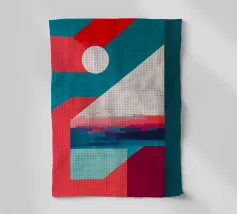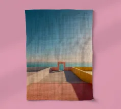Cette œuvre est une brillante exploration du temps et de la perception : l'artiste superpose un paysage côtier mélancolique et photoréaliste à des bandes de couleurs verticales d'inspiration rétro. Ce style d'art graphique associe des designs mid-century à des éléments surréalistes - les bandes en orange, olive et rouge atténué agissent comme un voile transparent qui sépare la réalité du souvenir. La lune ou le soleil brille alors à travers la bande colorée, ce qui ajoute une dimension spirituelle. Sur le mur, il crée une ambiance méditative et réveille les souvenirs qui s'estompent.