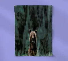 Un ours brun se repose paisiblement parmi les hautes herbes dans un cadre serein, se prélassant dans la douce lumière du matin, entouré par la beauté de la nature.