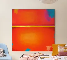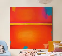 'Perspective d'été' Art abstrait - La couleur s'étend comme le soleil sur l'horizon, silencieuse mais pleine d'énergie. Ce n'est pas un lieu, c'est un sentiment : attente, chaleur, liberté. La peinture de champs de couleurs comme espace de nostalgie - un moment qui ne passe pas, mais qui reste. Optimiste et vivant, il rappelle les merveilleuses journées d'été. - Peinture originale en acrylique sur toile - maintenant disponible en impression d'art de haute qualité. -