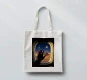 Découvrez la magie du voyage et du ciel nocturne grâce à cette œuvre d'art atmosphérique représentant une main qui touche délicatement le hublot d'un avion surplombant des dunes désertiques rougeoyantes. Un croissant de lune brille dans un ciel bleu profond rempli d'étoiles, créant un mélange serein d'errance et d'émerveillement. Les sables chauds et dorés contrastent magnifiquement avec les tons frais de la nuit, capturant le sentiment de solitude, de réflexion et de rêve au-dessus du monde. Parfait pour les amateurs de voyages, les minimalistes et les fans d'art cinématographique et de vues de fenêtre rêveuses.
