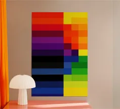 Une étude fascinante de la couleur et de la forme : Cette composition explore l'interaction de champs de couleurs pures disposés de manière géométrique. Du jaune éclatant aux nuances profondes de violet, de bleu et de vert, en passant par des rouges et des oranges ardents, se déploie un spectre visuel complexe de l'heure bleue. L'œuvre rappelle l'"Hommage au Square" de Josef Albers et le pixel art contemporain, tout en perpétuant la tradition de l'art concret. La composition asymétrique crée une tension et un rythme - une œuvre méditative sur les relations chromatiques entre le jour et la nuit.